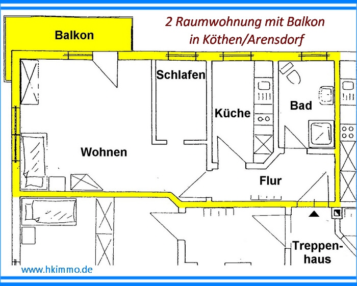 Diese 2-Raumwohnung mit Balkon befindet sich im Erdgeschoss eines Mehrfamilienhauses mit 9 Wohneinheiten.