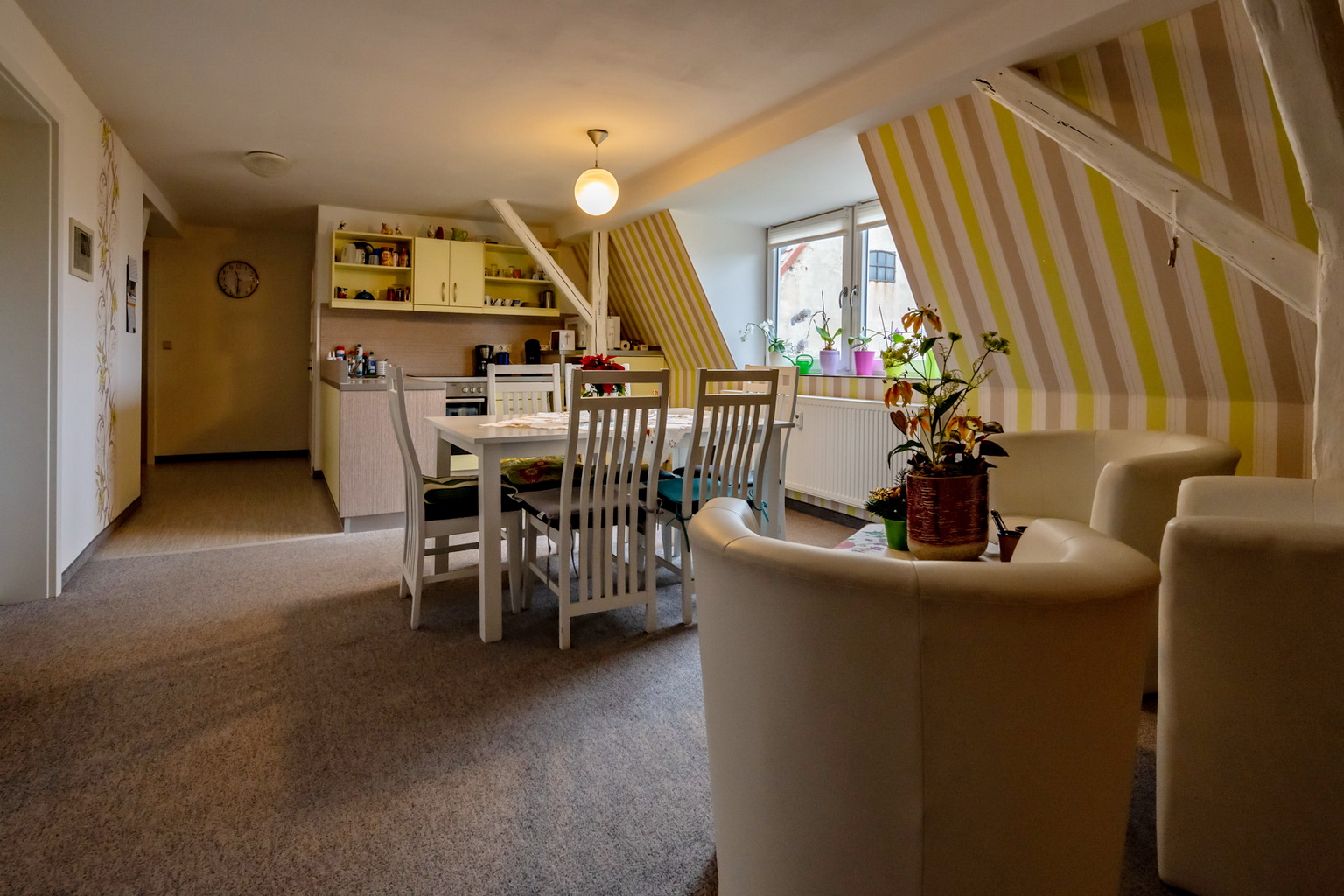 Sie sind Rentner und haben nach wie vor den Wunsch nach regem gesellschaftlichen Austausch. Die Kinder sind weggezogen und kommen nur noch selten zu Besuch. Finden Sie hier eine kleine neue Familie! In dieser liebevoll sanierten Villa wohnen Sie in einer Seniorenwohngemeinschaft von jeweils 3 Personen auf einer Etage. Die 2 Wohneinheiten sind je ca. 125 m² groß und befinden sich im Erdgeschoß und im Obergeschoß. Ihr eigenes Zimmer (ca. 20-25 m²) mit zugehörigem barrierefreien Bad inkl. ebenerdiger Dusche können Sie nach Belieben einrichten. In jeder Wohnung befinden sich außerdem eine geräumige und modern ausgestattete Küche sowie ein Hauswirtschaftsraum. Beide Räume können gemeinsam genutzt werden. Auf Anfrage ist das Mitbringen von Haustieren ebenfalls möglich. Der großzügig angelegte Garten lädt zum Bewirtschaften und Verweilen ein. Ein gemeinsamer überdachter Freisitz mit Blick in den Garten ergänzt das Angebot.